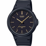 La montre Casio MW-240-1E2VEF est une montre homme conçue pour offrir fonctionnalité et robustesse dans un format classique et confortable. Elle dispose d’un bracelet en résine noire, un matériau reconnu pour sa durabilité, sa légèreté et sa résistance à l’usure, garantissant une utilisation prolongée sans sacrifier confort ni style. Son cadran noir s’accorde avec le bracelet pour un design sobre et polyvalent, adapté à un usage quotidien et à divers environnements. Elle est équipée d’un type de fermeture à boucle, qui facilite un ajustement sûr et personnalisé au poignet. Ce modèle est conçu pour résister au contact avec l’eau jusqu’à 5 bars, assurant une protection efficace contre les éclaboussures et la pluie, sans être adapté aux immersions prolongées. Le boîtier et les finitions reflètent la robustesse caractéristique de Casio, idéale pour les utilisateurs recherchant une montre fiable et fonctionnelle. Son design, sans complications techniques ni décoratives majeures, en fait une option pratique et abordable pour ceux qui privilégient la simplicité et la résistance, avec la garantie de qualité propre à la marque japonaise. En résumé, la Casio MW-240-1E2VEF allie matériaux durables et style discret répondant aux besoins essentiels d’une montre masculine contemporaine.